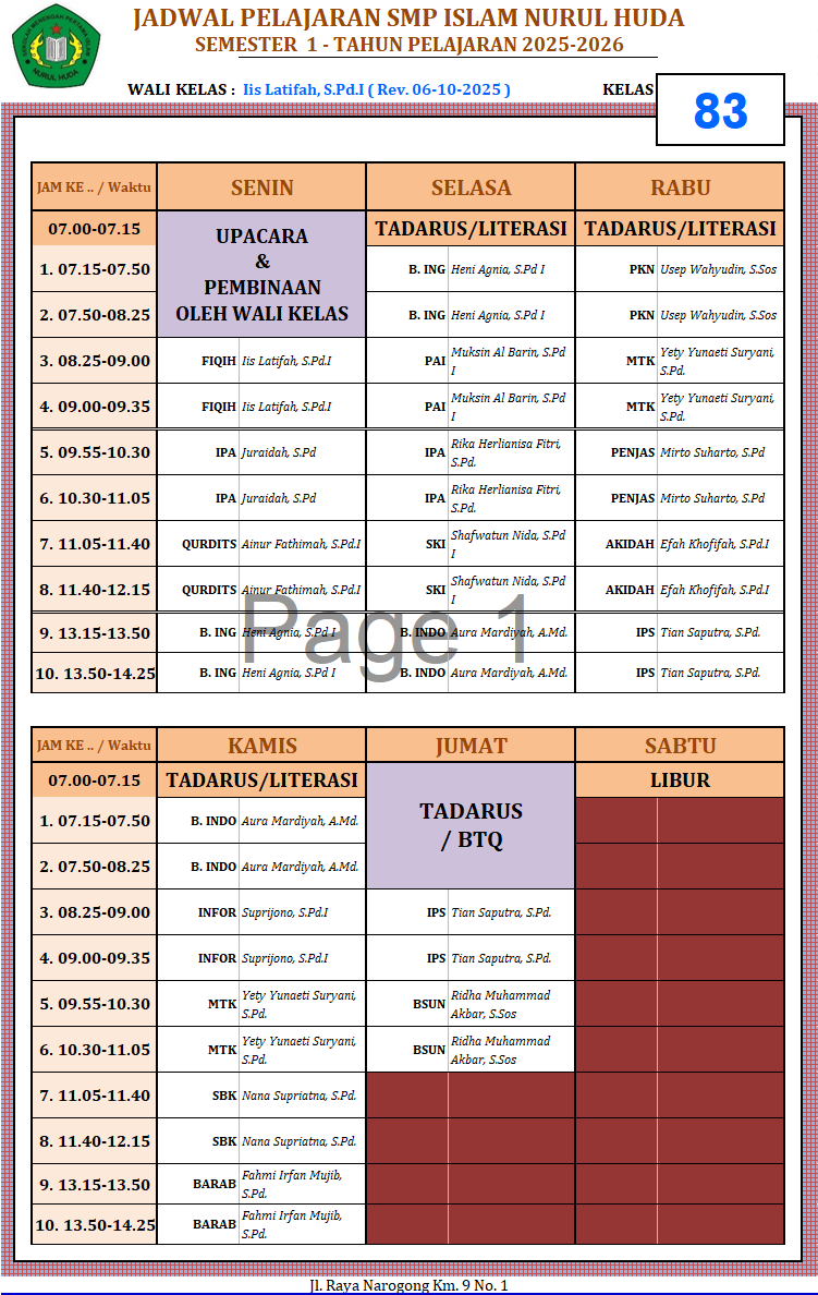 | 8. | Iis Latifah, S.Pd.I | 83 | Lihat Jadwal |