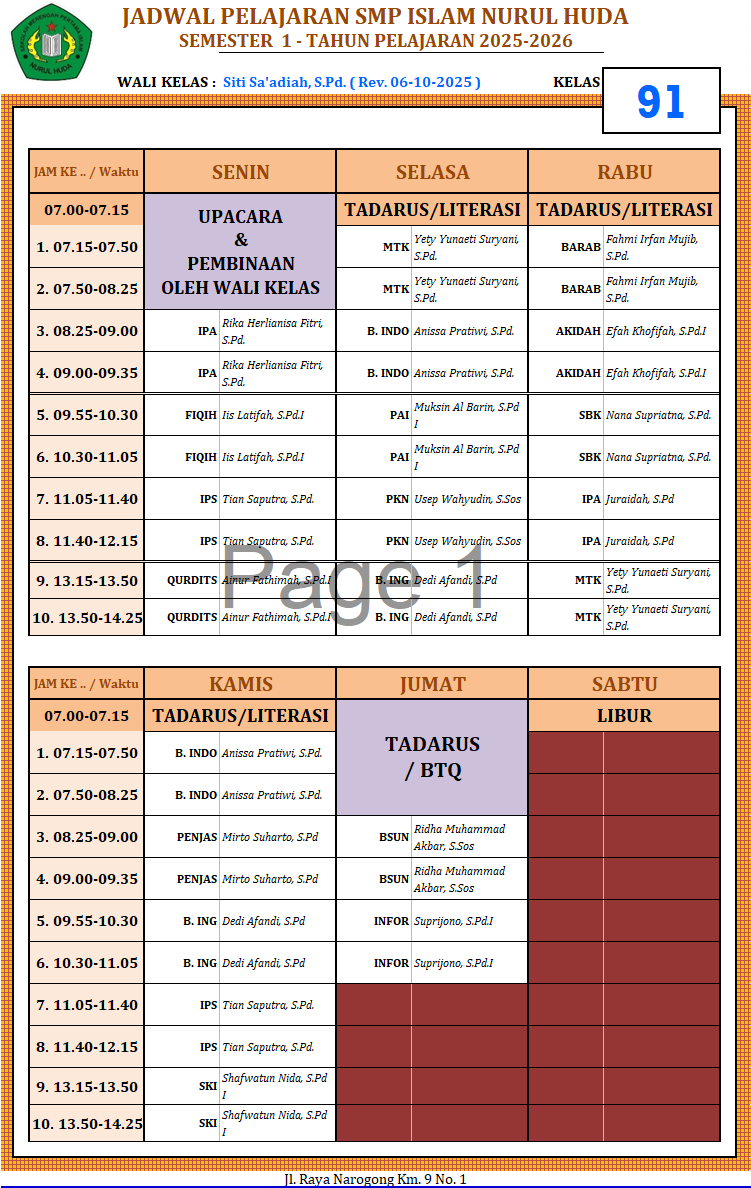 | 12. | Siti Sa'adiah, S.Pd. | 91 | Lihat Jadwal |